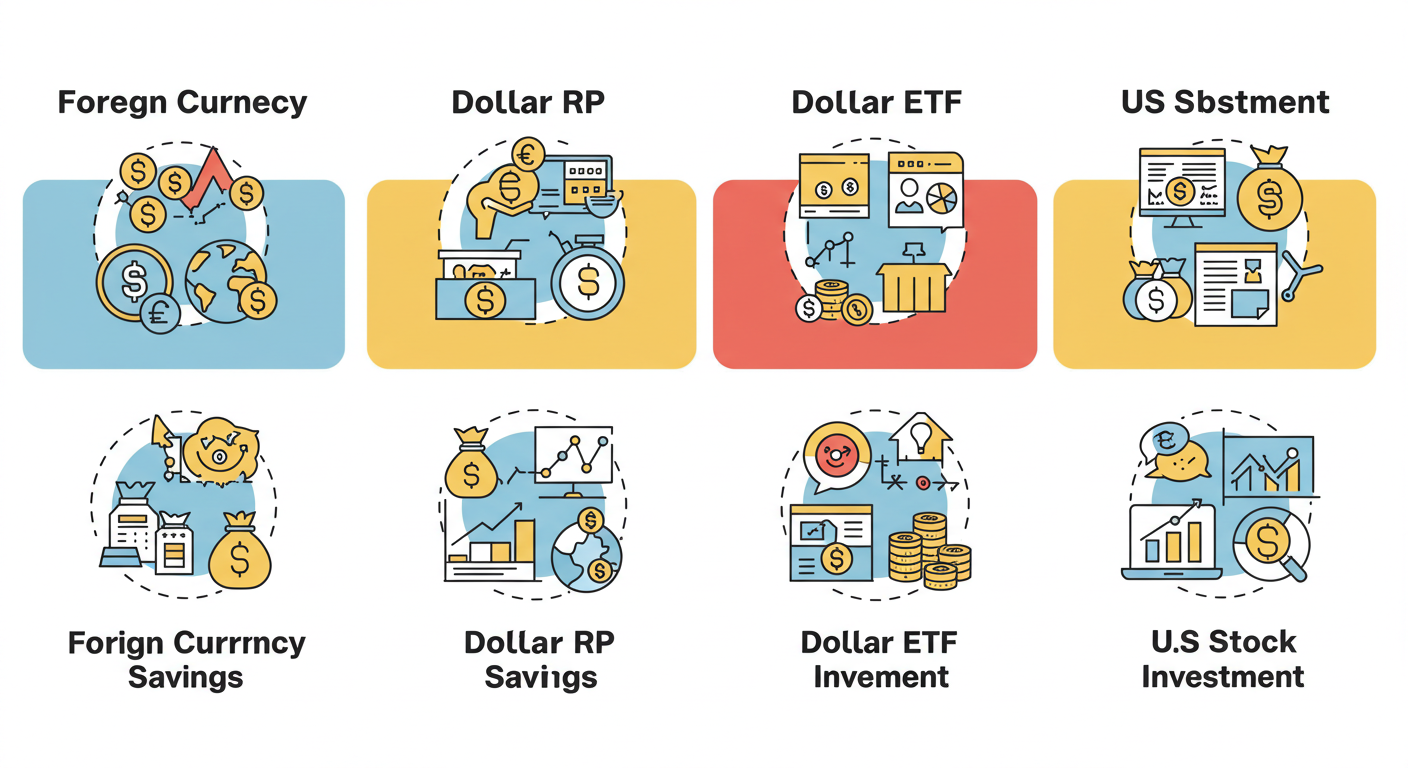 | 미국 채권·주식 | 직접 달러 기반 자산 투자 | 달러 가치 상승 시 이중 수익 | 진입 장벽 높고 리스크 있음 |